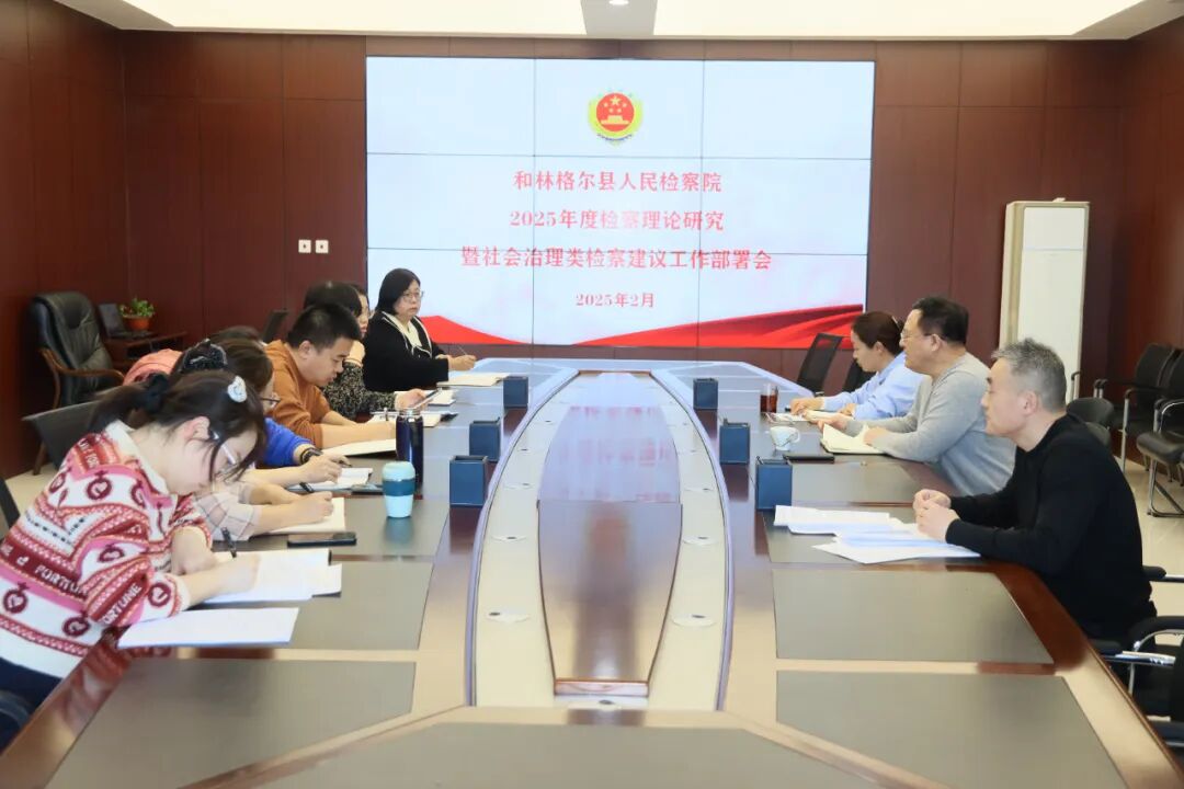 为进一步推动检察理论研究深入发展,提升检察机关在社会治理中的参与度和影响力。2月18日,和林格尔县人民检察院召开2025年度检察理论研究暨社会治理类检察建议工作部署会。院党组书记、检察长刘玮主持会议,班子成员、各部室主任及各条线员额检察官参加会议?。